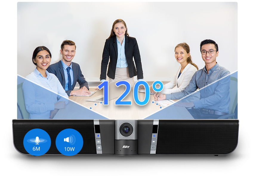 The VB342+ captures the room with a 120° FOV multi-glass lens that features a motorized 180° pan and 105° tilt view for a wider perspective than ever. No more concern about where your seat is located.